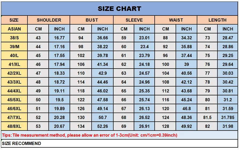 2) Normally, the shirt size should be bigger than your body size. you can check your usual shirt. if your body chest is 100cm, we suggest you choose shirt with 104cm or 108cm. This product is a slim fit, it is recommended to buy one size larger than usual.