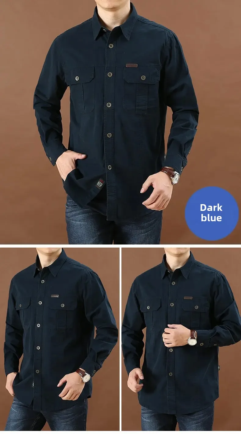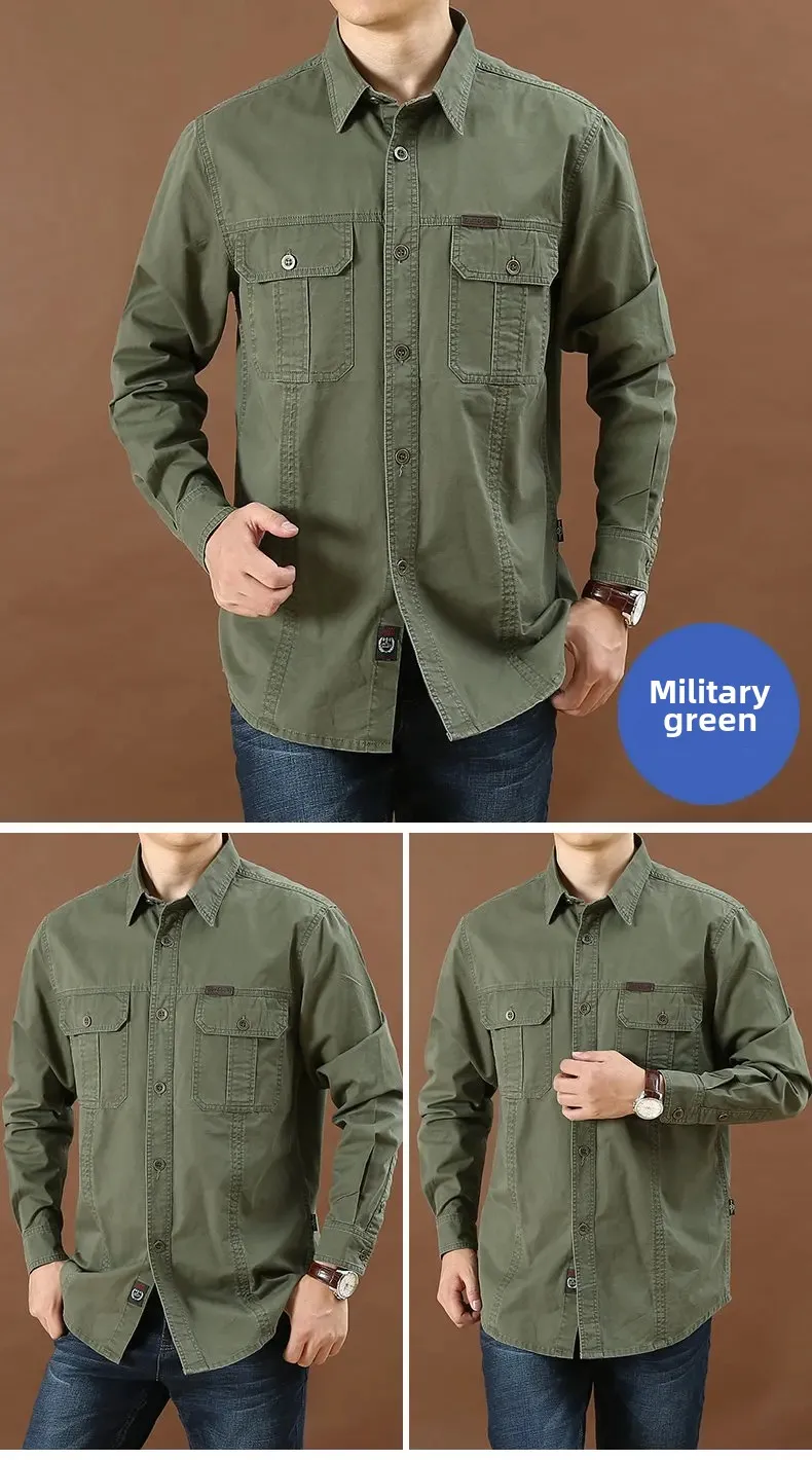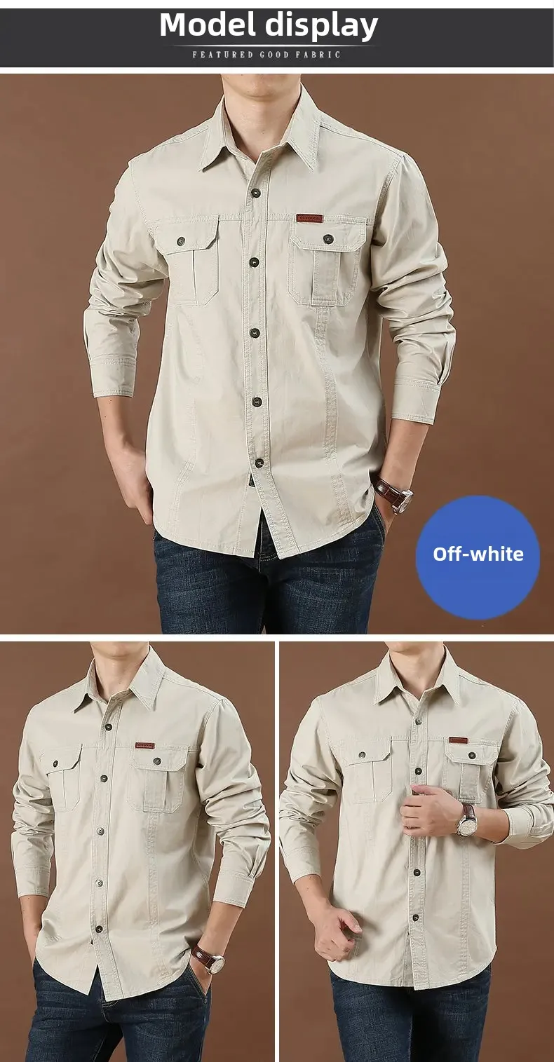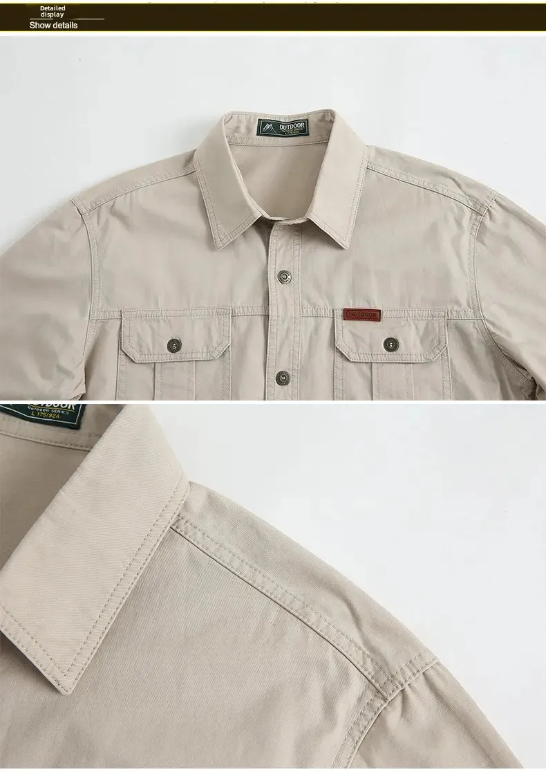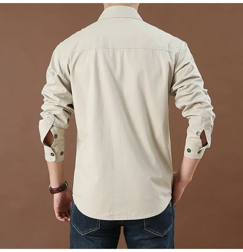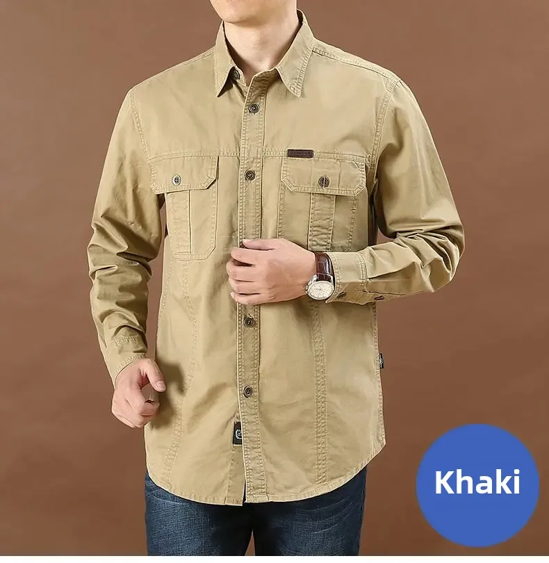 Men's Long Sleeve Double Pocket Khaki Shirt