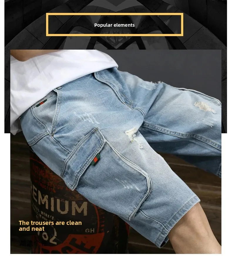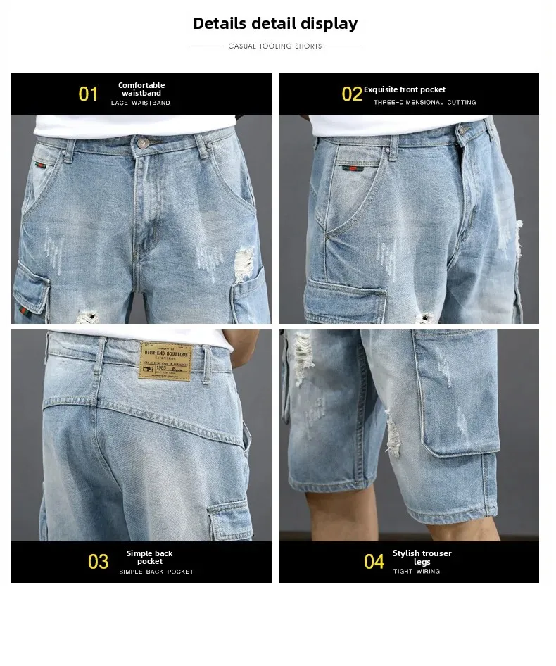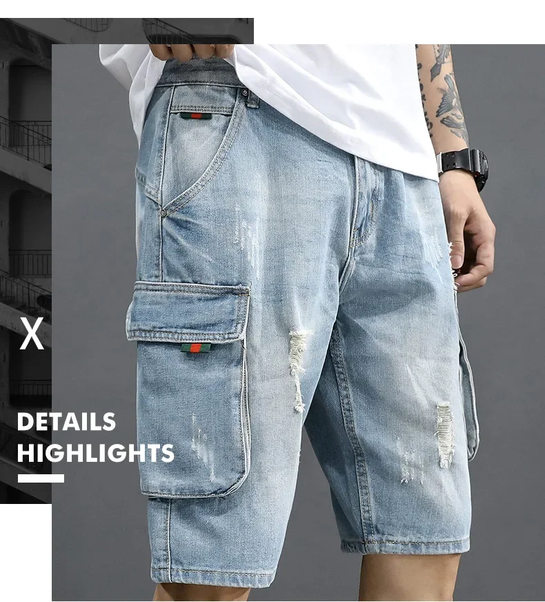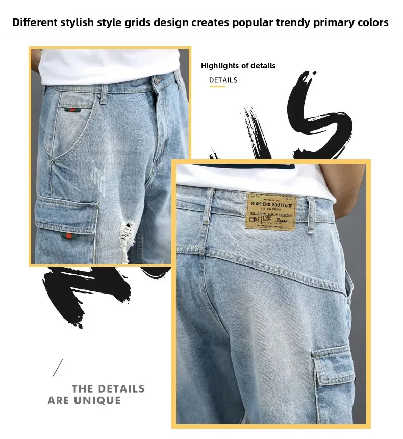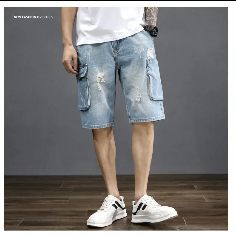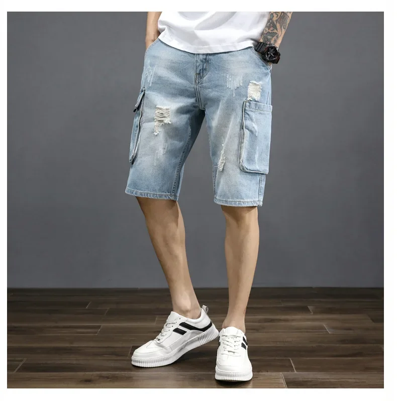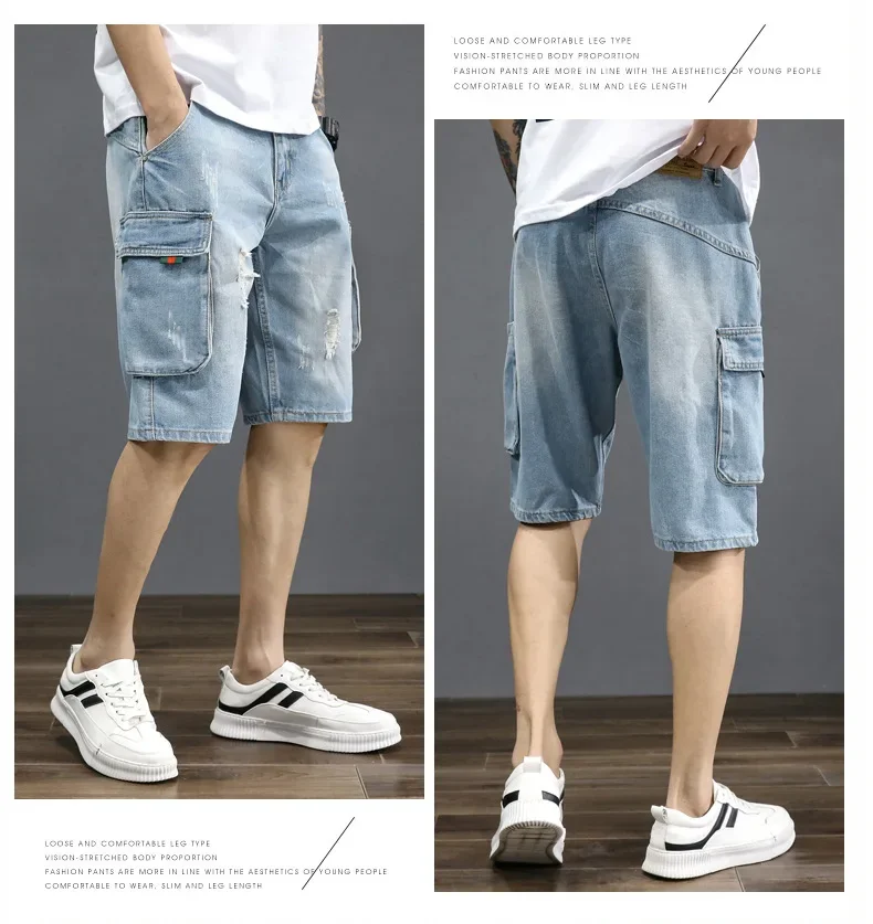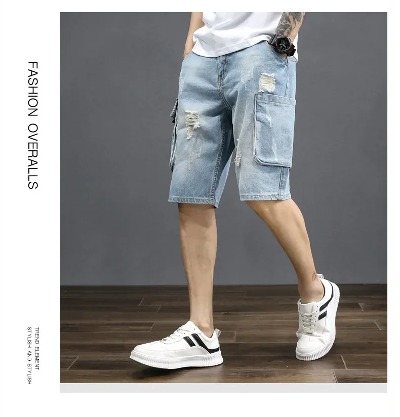 • Men's Denim Trendy Mid-length Shorts : These mid-length denim shorts are a stylish addition to any man's wardrobe, blending fashion with functionality.